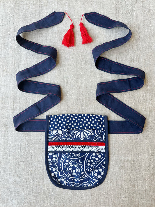Waist accessory pocket “Valentyna” – vintage printed belt pouch with red tassels