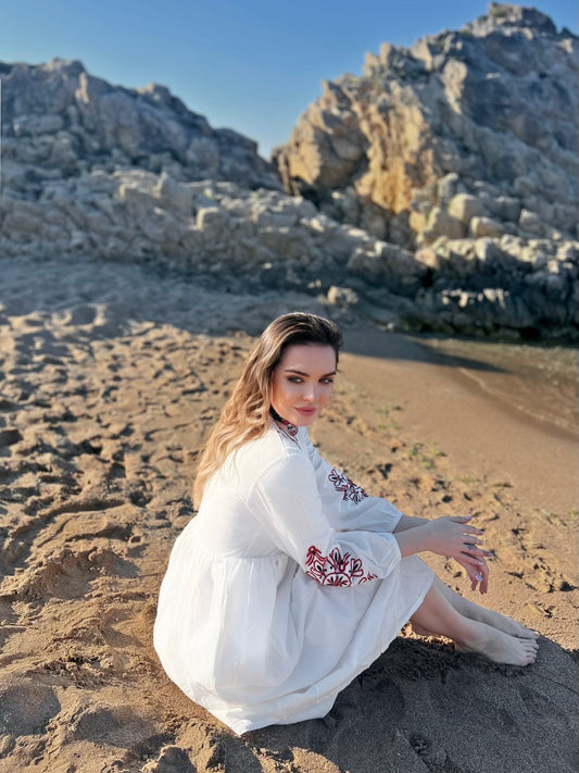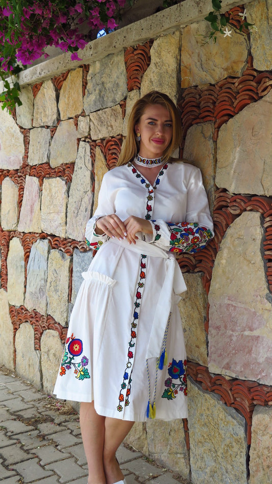Сукня з поясом “Kvіtana” — біла вишита сукня міді