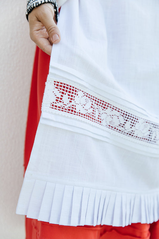 Фартух з квітковою вишивкою та мереживом “Джерело”