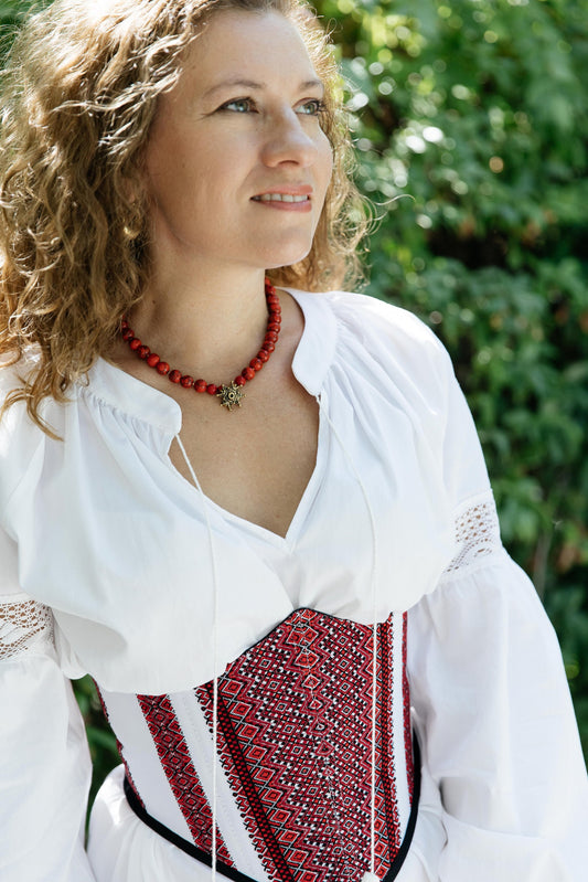 Багаторядне коралове намисто «Калинова тиша» — традиційна українська прикраса з коралів