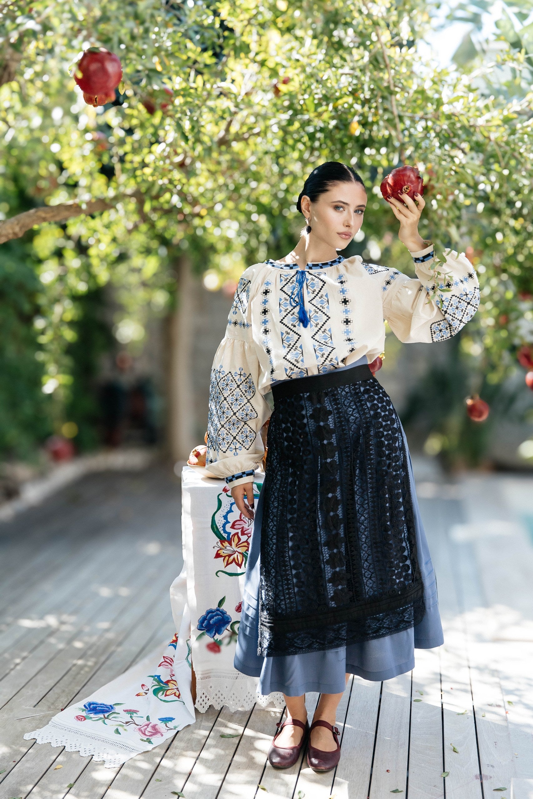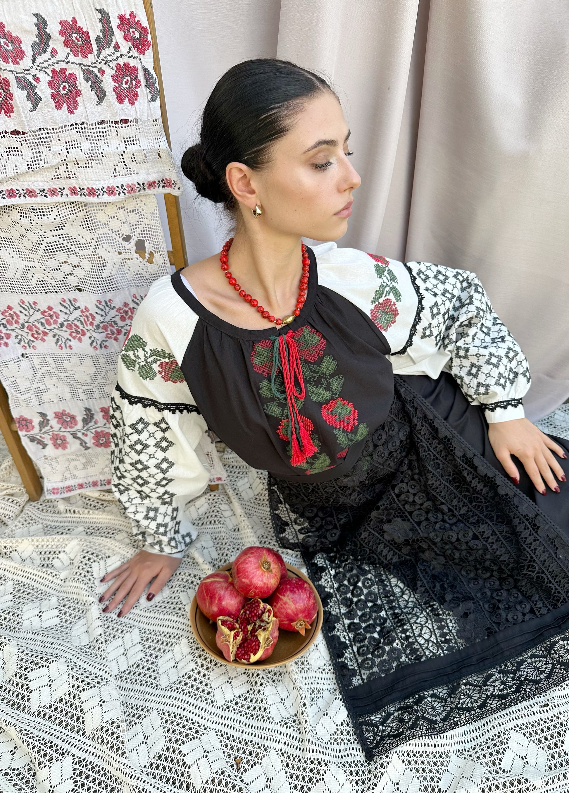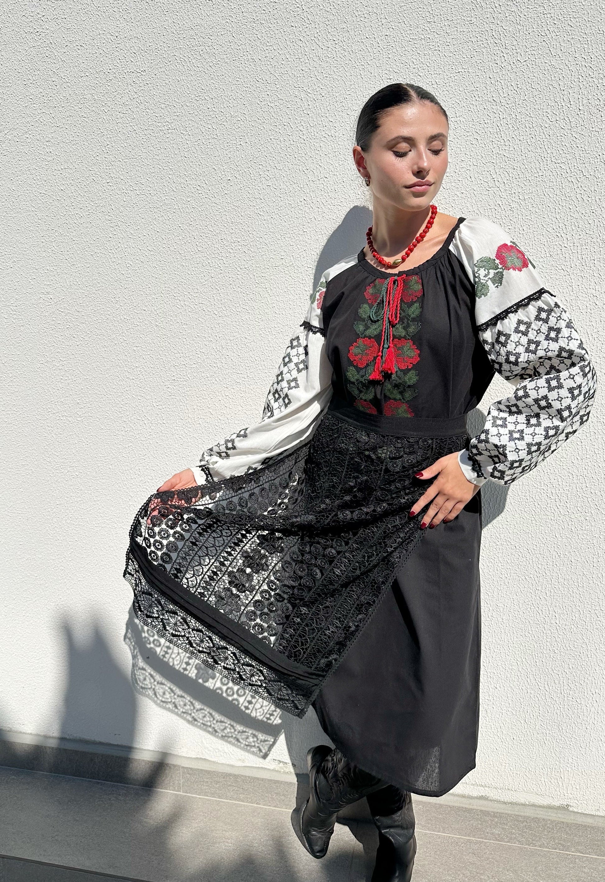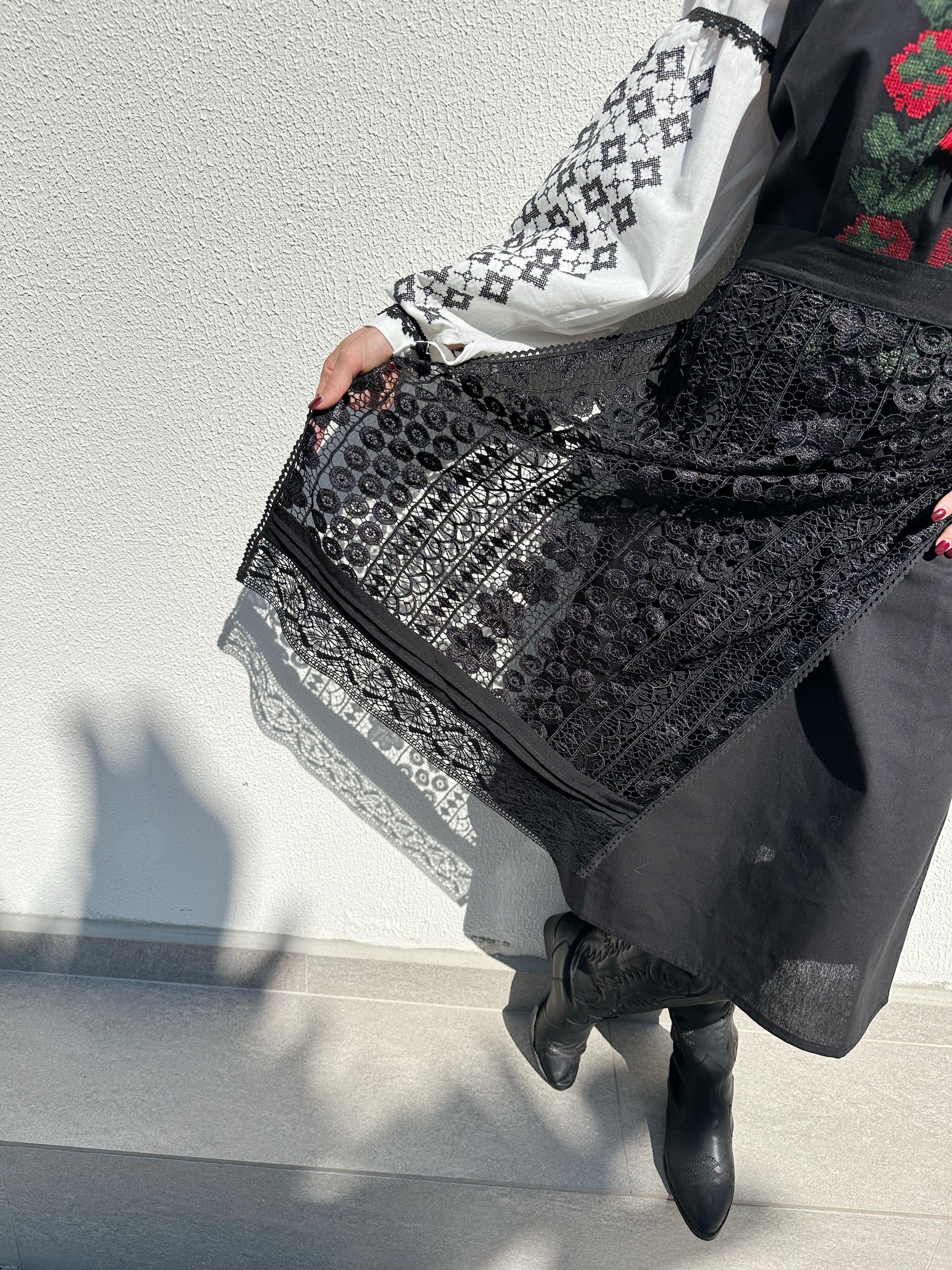 Вишуканий чорний фартух із колекції Goya Concept — це сучасне прочитання традиційної української запаски.