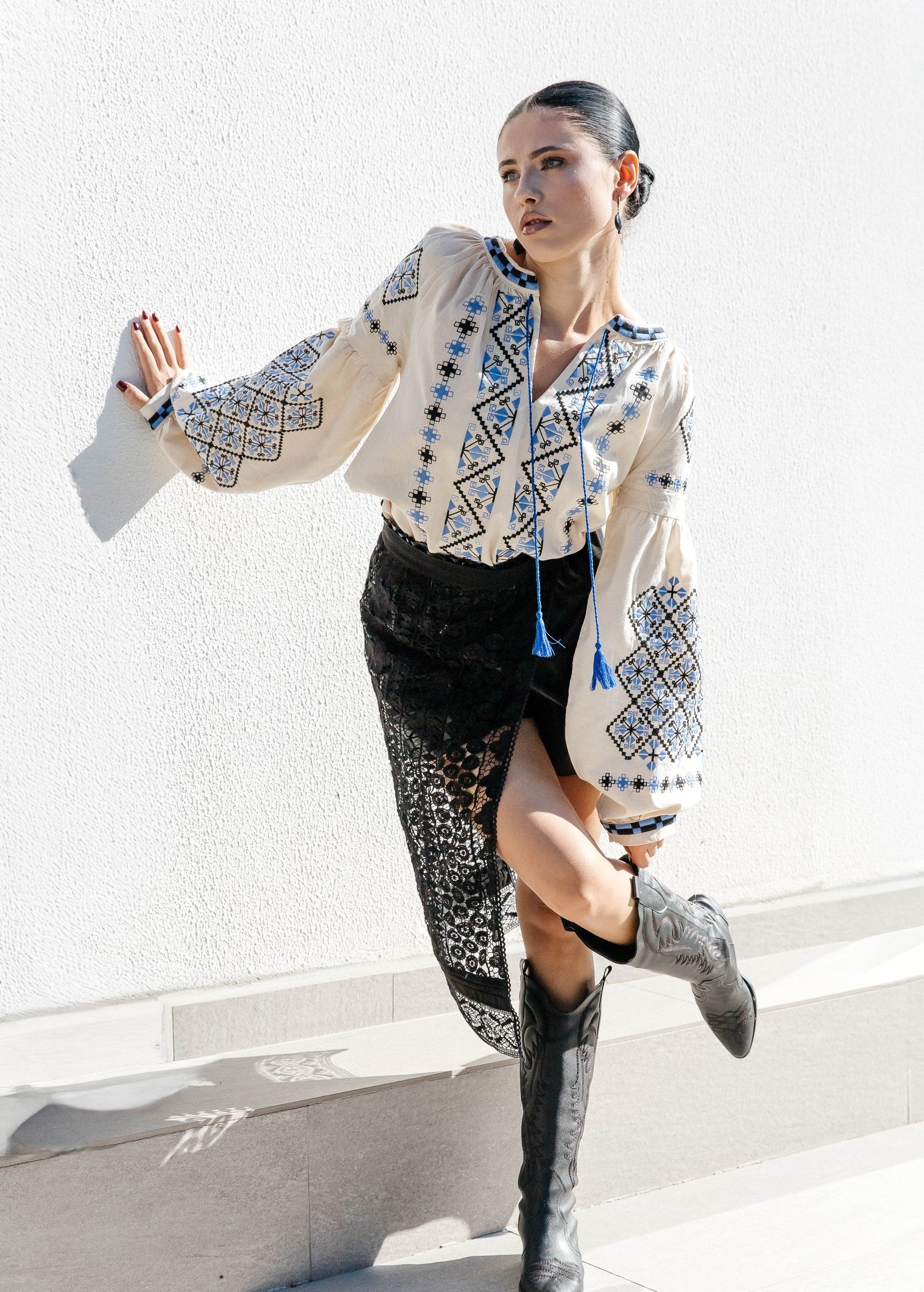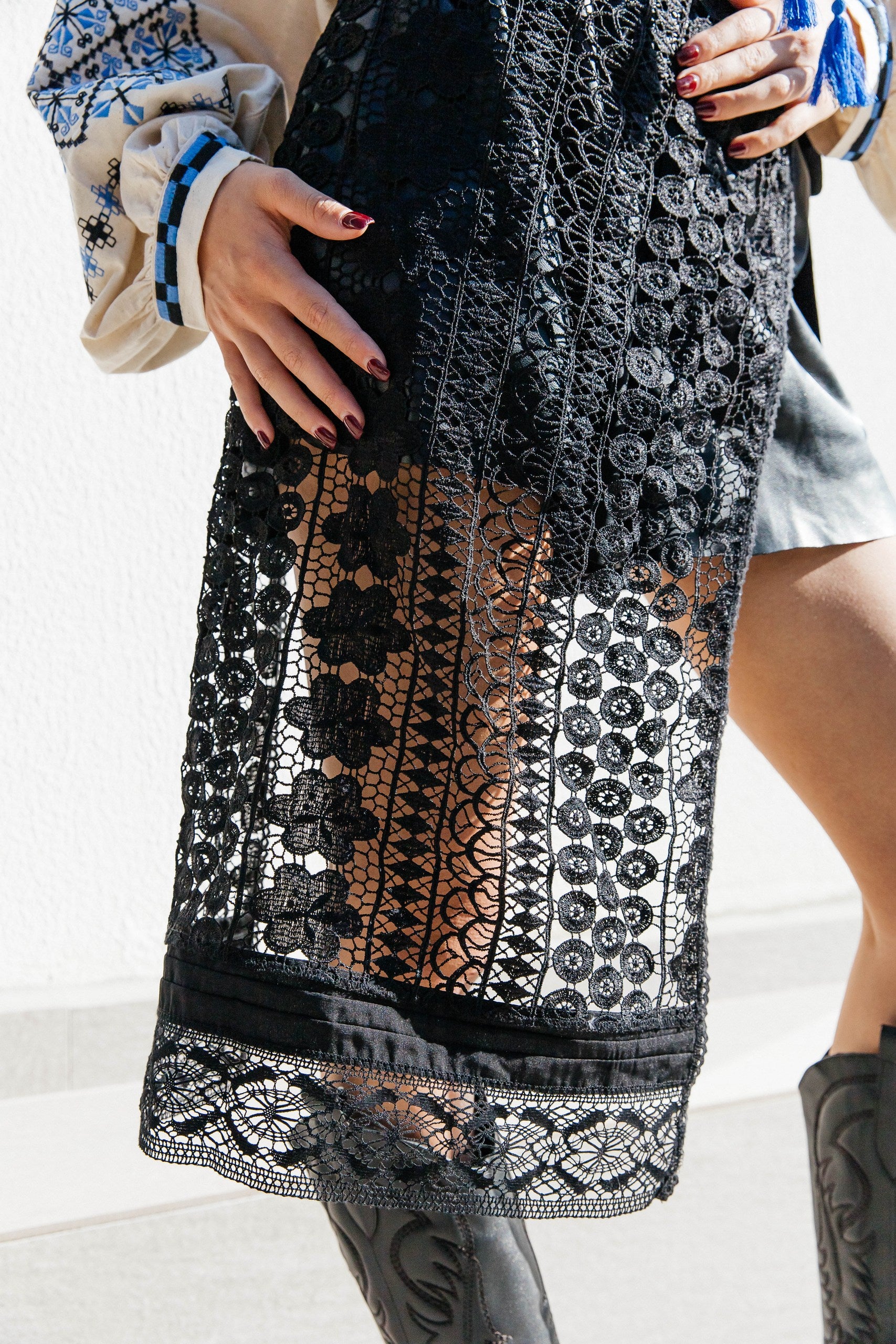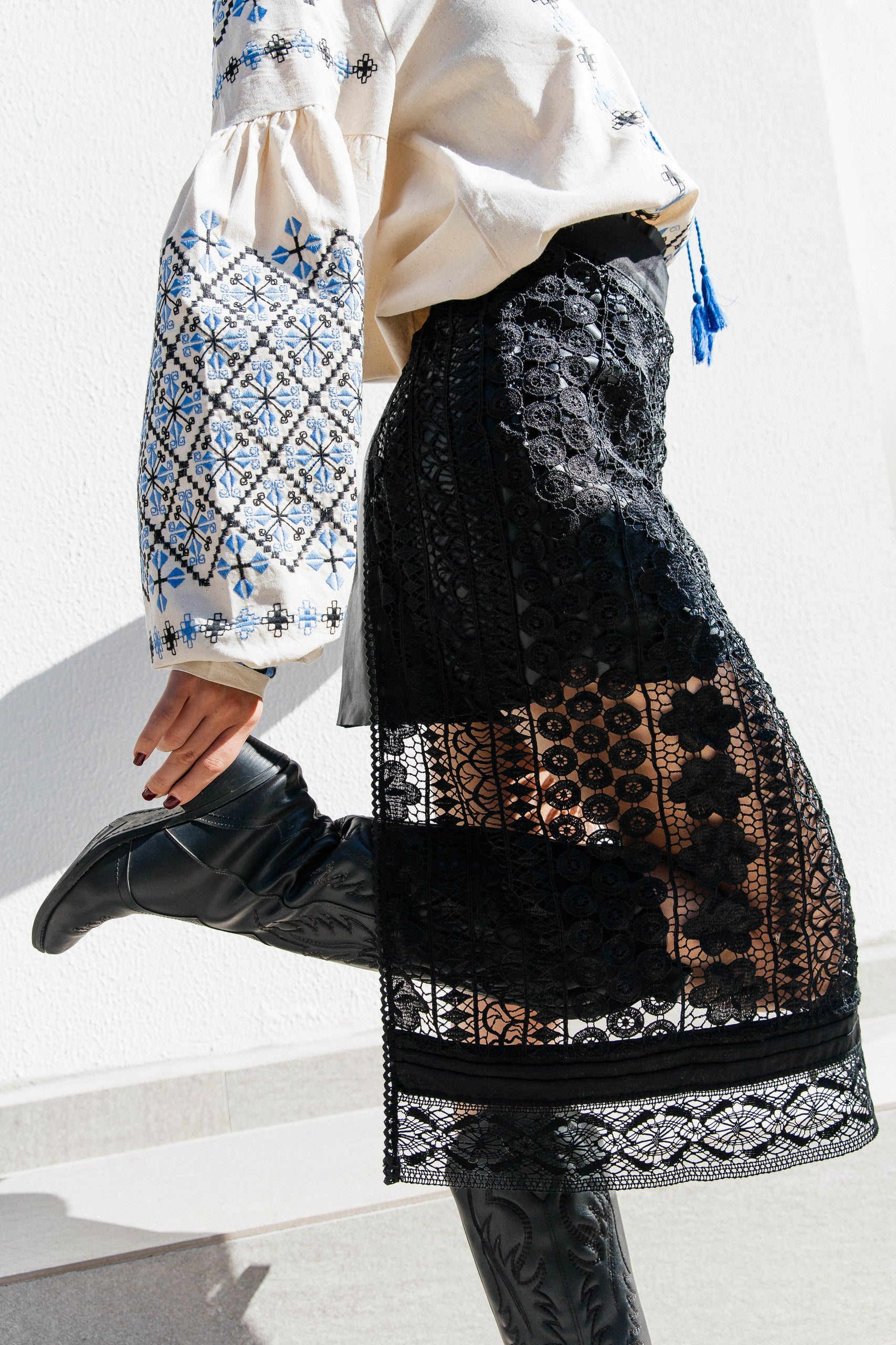 Прозоре мереживо додає легкості, а щільні вишиті елементи створюють глибину й виразність.