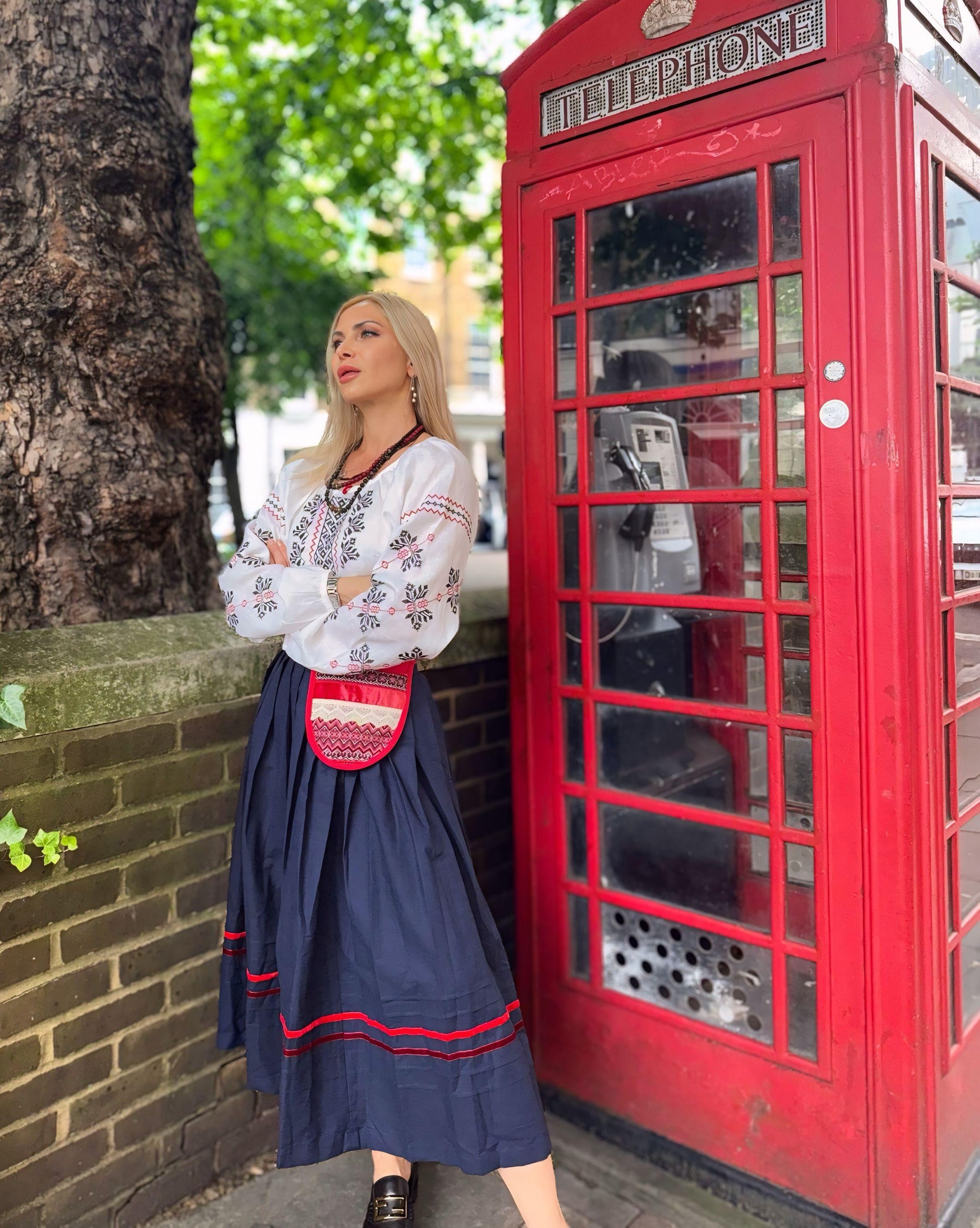 Inspired by the traditional ladunka pocket, it ties around the waist with soft velvet straps — perfect to wear over a skirt, shirt, or dress.