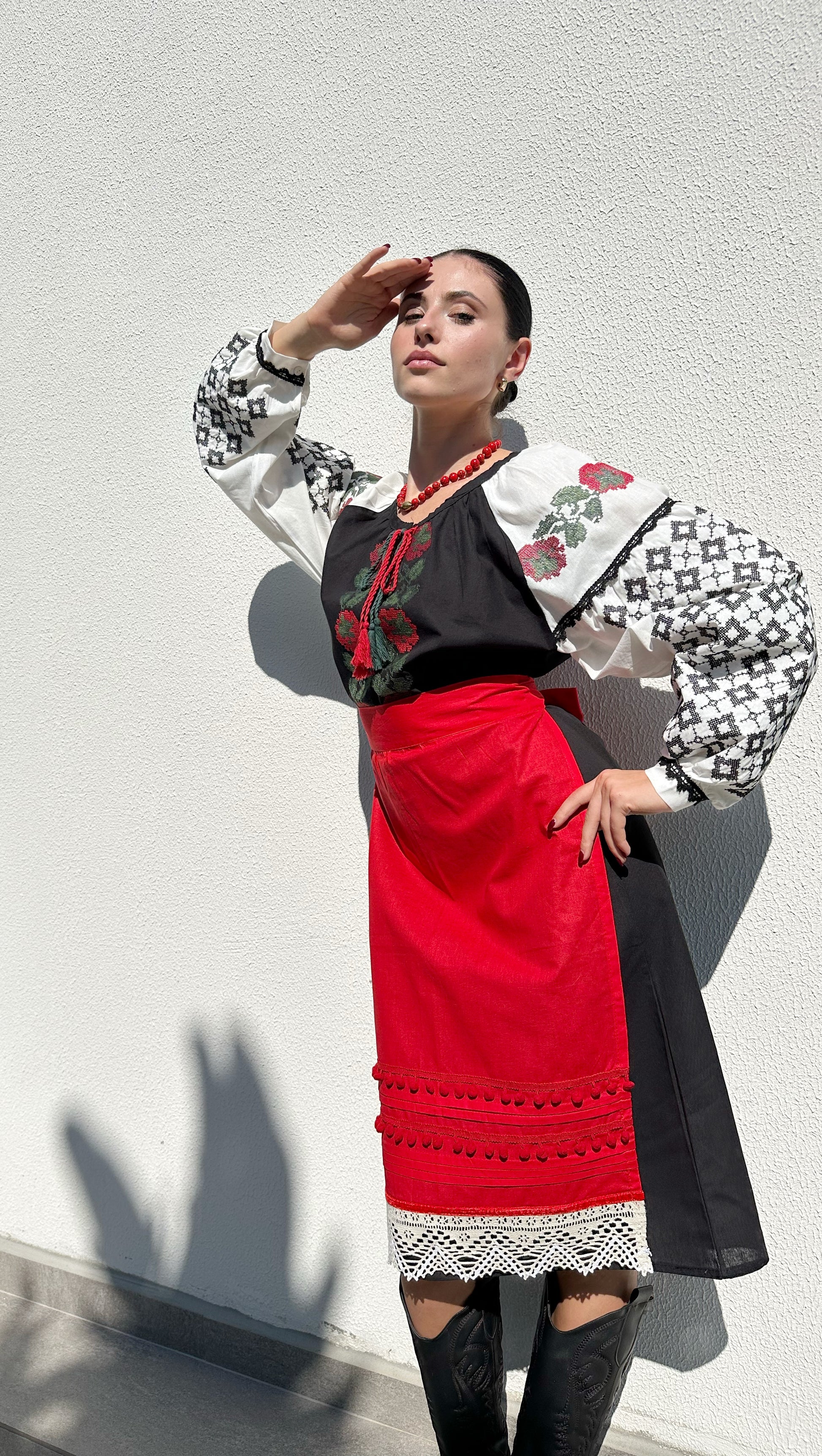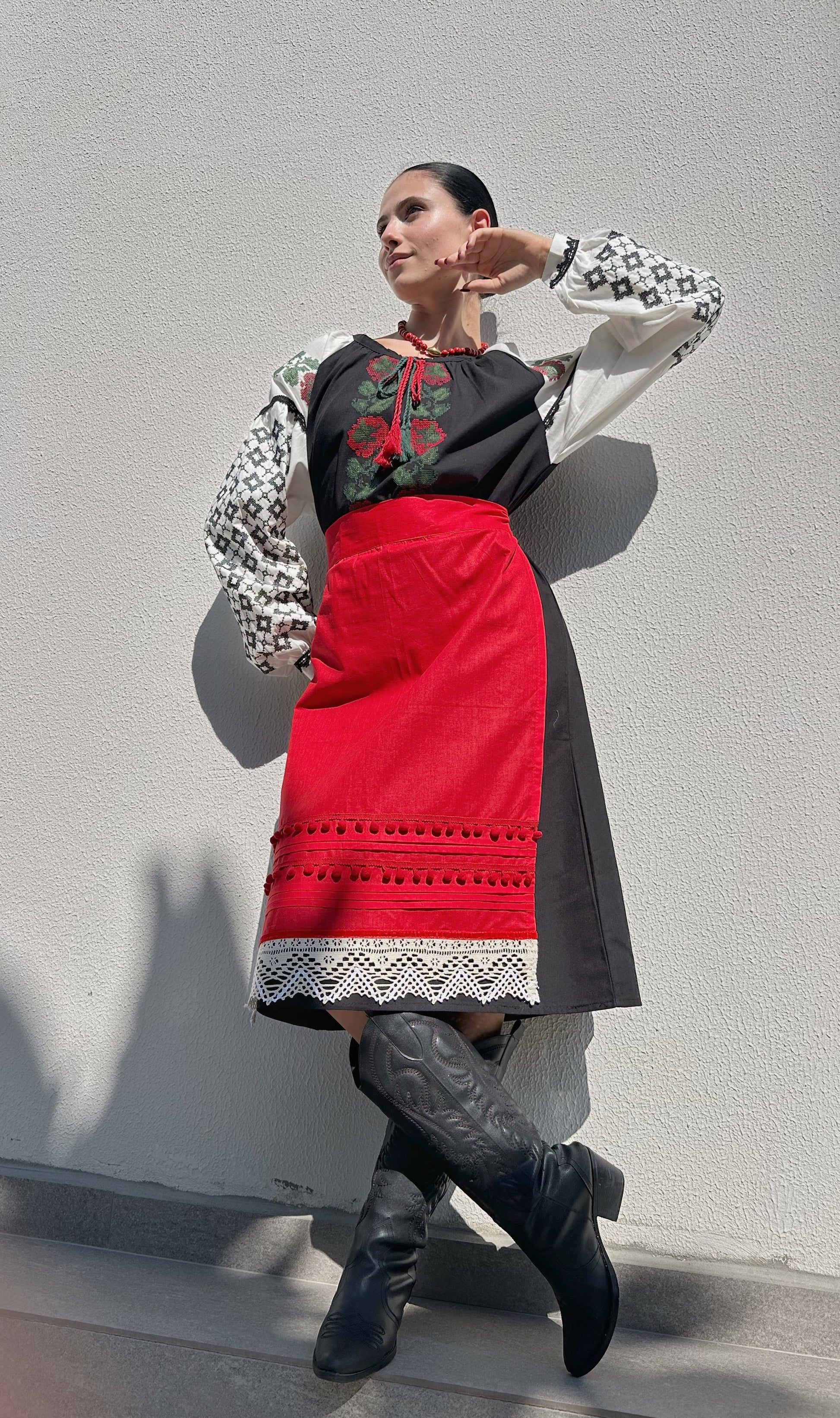 Фартух «Кармін» — яскравий акцент у сучасному етнообразі.