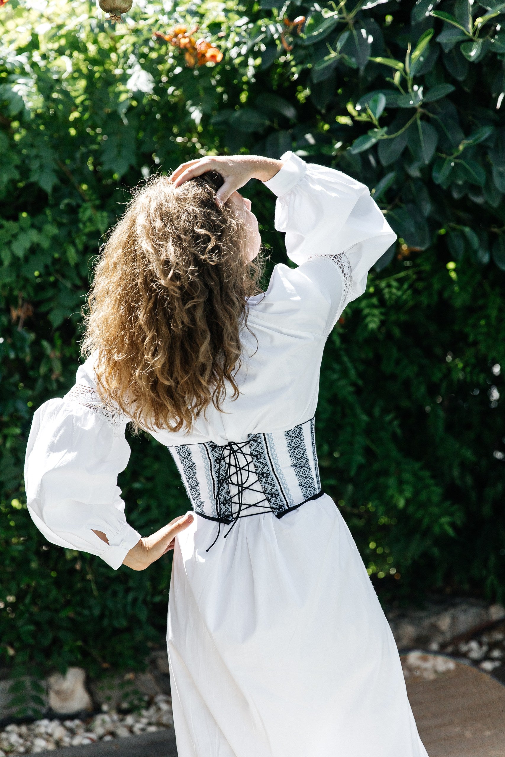 With its adjustable lace-up back, the corset shapes gently without constraining — perfect over a blouse, dress, or a casual tee.