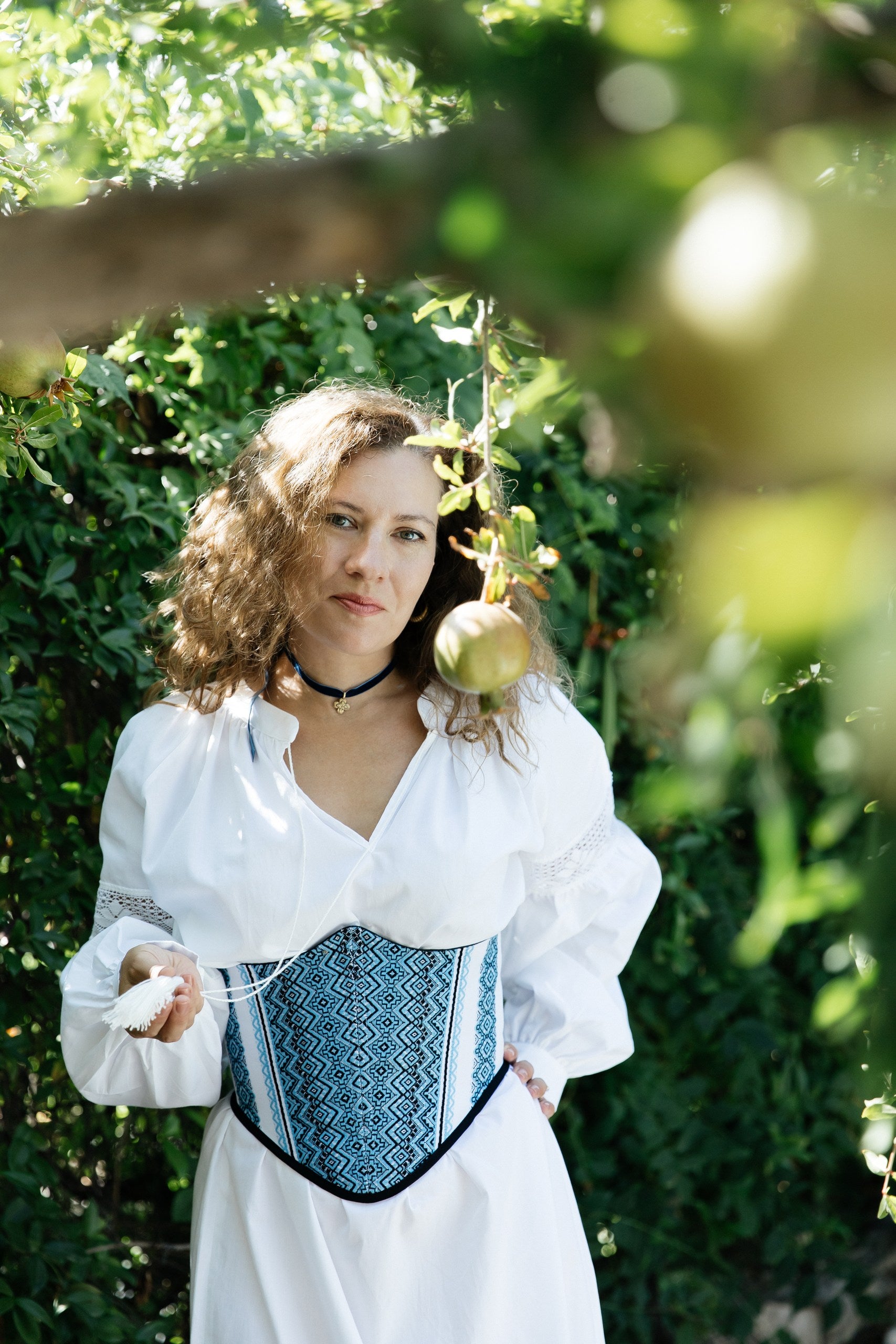 The name Vodohrai means waterfall — a symbol of movement, renewal, and life force in Ukrainian culture. This corset embodies that fluid grace, empowering every motion with softness and confidence.