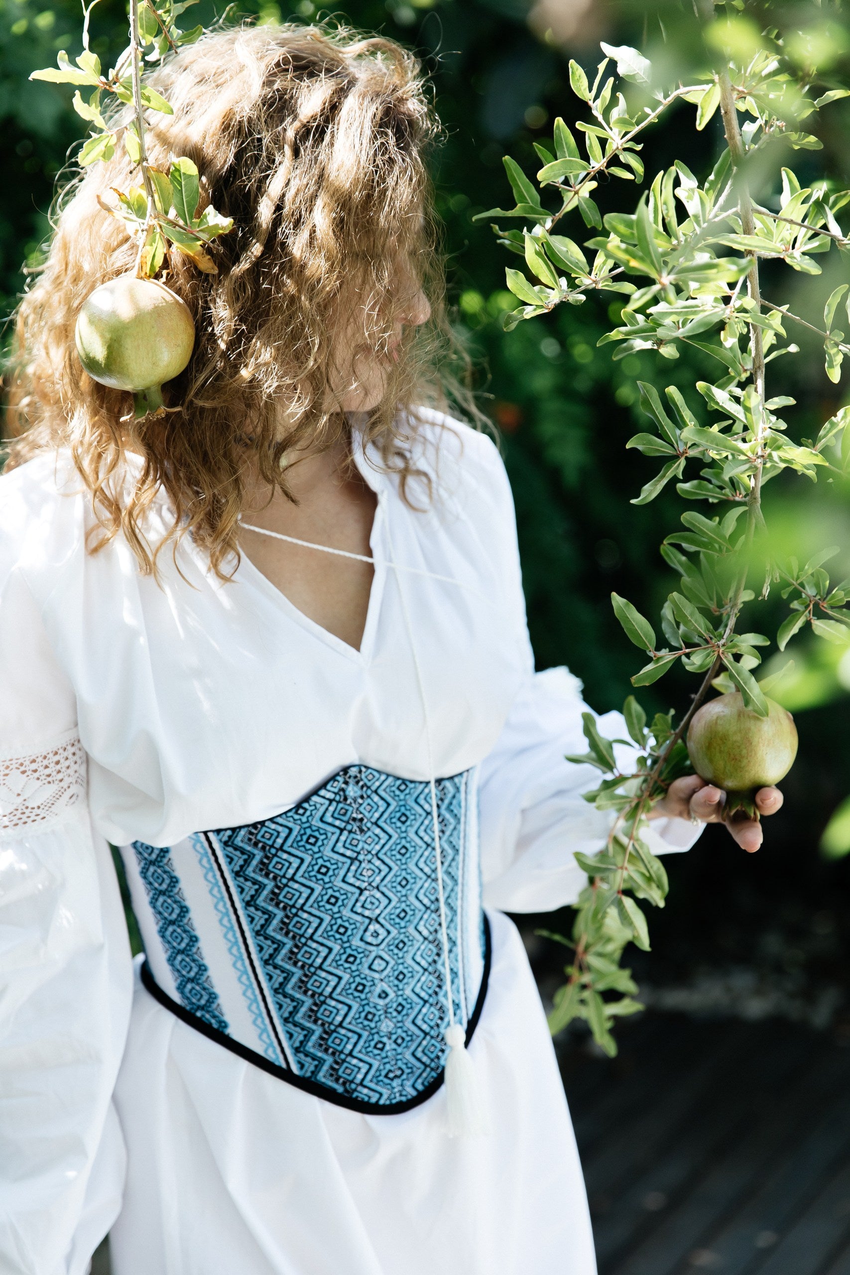 Vodohrai Reversible Blue Ethnic Corset – Ukrainian Pattern Waist Accessory